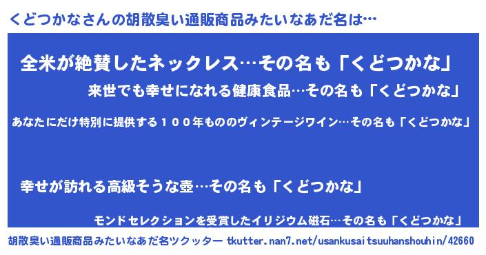 | 意味不明あだ名 | 『住所不定無職くどつかな(12歳)』 |