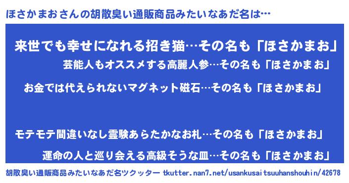 | ヘコむあだ名 | 『ほさかまお(笑)』『豆乳』 |