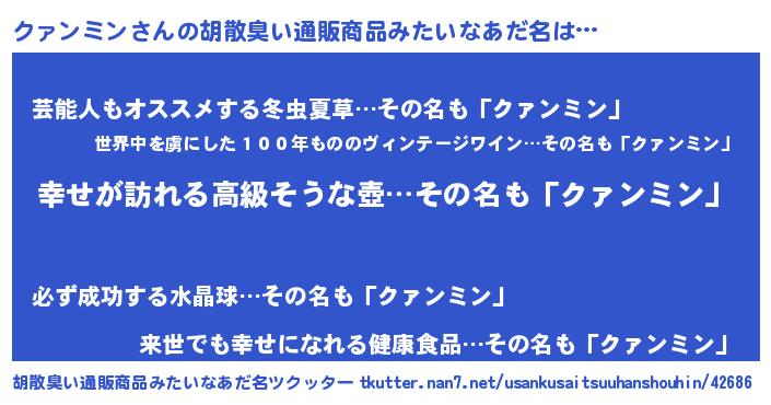 | 恥ずかしいあだ名 | 『クァっちょ』『クァンミンデラックス』 |