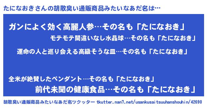 | ヘコむあだ名 | 『酢こんぶ』『たになおき(苦笑)』 |