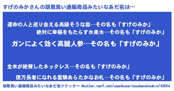 | 意味不明あだ名 | 『自称すげのみか』『ペロリンすげのみか』 |