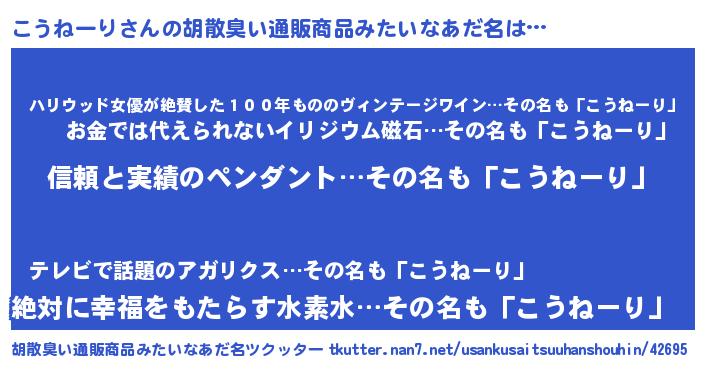 | 意味不明あだ名 | 『とにかく怪しいこうねーり』 |