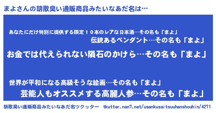 | ヘコむあだ名 | 『まよっちょ』『なまこ酢』 |