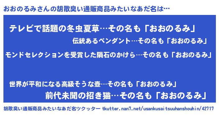 | 男性向けラノベタイトル風あだ名 | 『ノーゲーム・ノーオオノルミ』 |