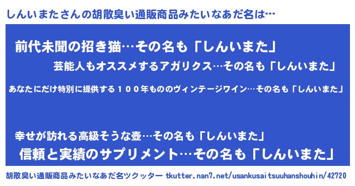 | ヘコむあだ名 | 『しんいまた(小並感)』『しんお』 |