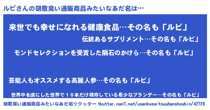 | ヒーロー風カッコイイあだ名 | 『天空の使者ルビ』『ネオルビ』 |