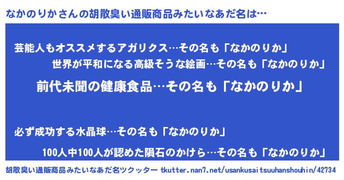 | 意味不明あだ名 | 『永久保存なかのりか』『自称なかのりか』 |