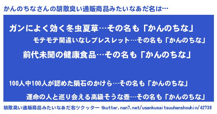 | ヘコむあだ名 | 『かんのちな(爆)』『酢こんぶ』 |