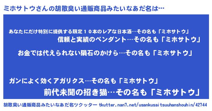 | ヘコむあだ名 | 『ミホサトウ(遠い目)』『ミホっ子』 |
