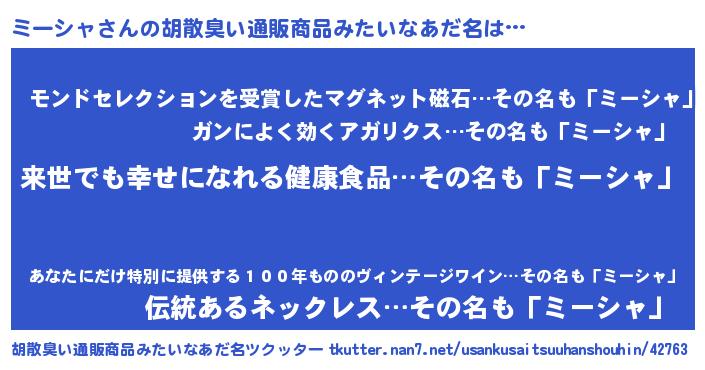 | 意味不明あだ名 | 『永久保存ミーシャ』『自称ミーシャ』 |