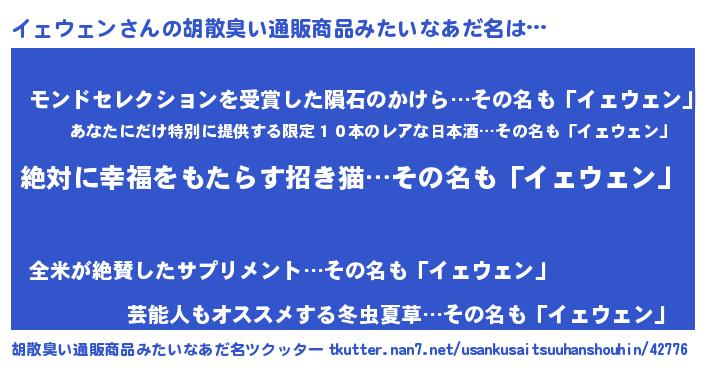 | ヘコむあだ名 | 『イェウェン(笑)』『イェぷりん』 |