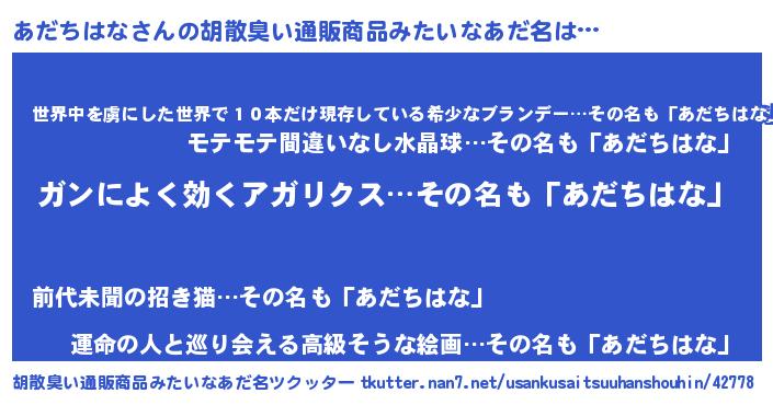 | 恥ずかしいあだ名 | 『アダチハナデラックス』『あだっちょ』 |