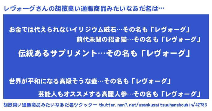 | 欧米人風あだ名 | 『ウサインレヴォーグ』 |