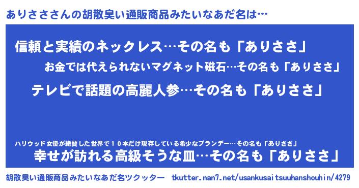 | 恥ずかしいあだ名 | 『アリササデラックス』『アリリンリン』 |