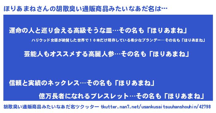 | 恥ずかしいあだ名 | 『ホリアマネデラックス』『ほりっちょ』 |