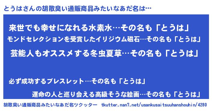 | 意味不明あだ名 | 『ニラ科とうは属』『自称とうは』 |