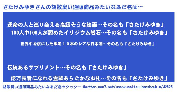 | 意味不明あだ名 | 『住所不定無職さたけみゆき(43歳)』 |