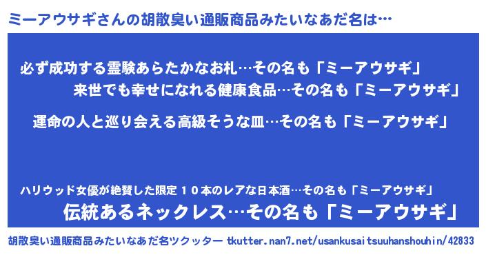 | ファンタジー風あだ名 | 『エターナルミーアウサギー』 |