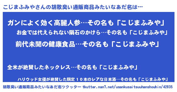 | 男性向けラノベタイトル風あだ名 | 『こじまふみやに滅ぼされるだけの簡単なお仕事です』 |