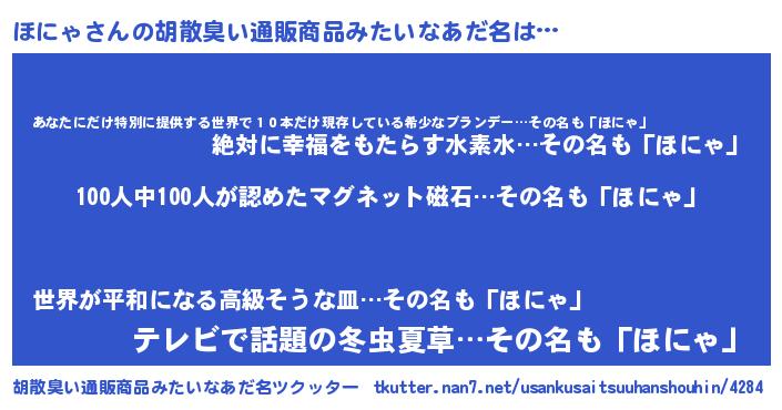 | 意味不明あだ名 | 『眠気覚ましガムほにゃ味』『自称ほにゃ』 |