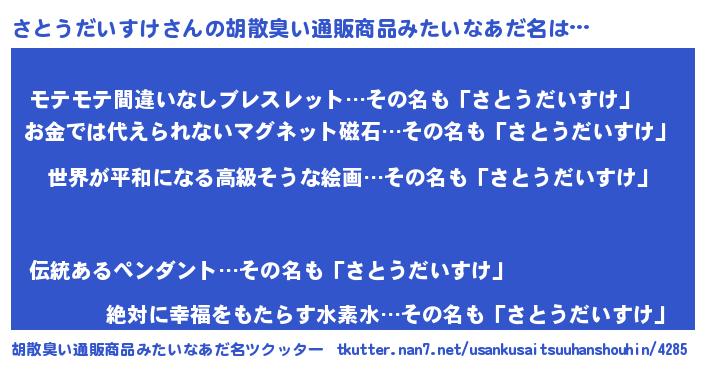 | 肩書あだ名 | 『さとうだいすけ総理大臣』 |