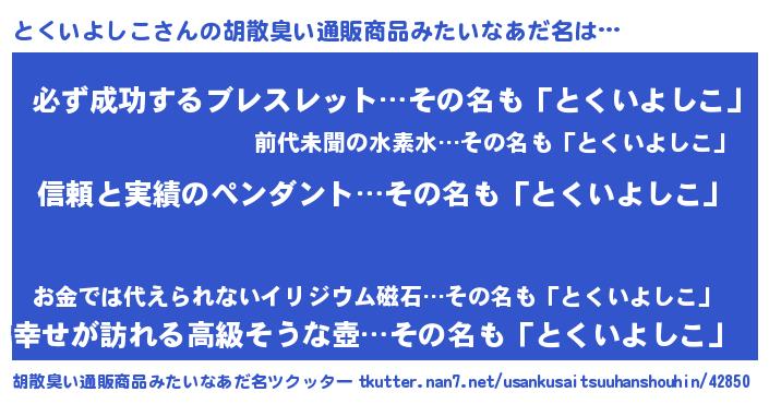| 欧米人風あだ名 | 『ウサインとくいよしこ』 |