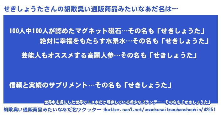 | 意味不明あだ名 | 『自称せきしょうた』 |