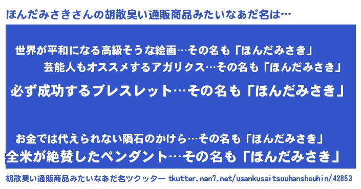 | 恥ずかしいあだ名 | 『プリティーほんだみさき』『ほんっちょ』 |