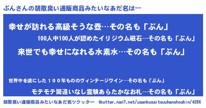 | ヘコむあだ名 | 『ぷん(遠い目)』『豆乳』『ぷんにー』 |
