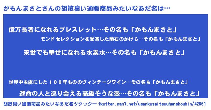 | 意味不明あだ名 | 『永久保存かもんまさと』 |