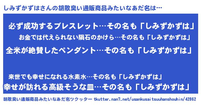 | 意味不明あだ名 | 『ニラ科しみずかずは属』 |