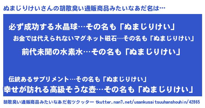 | 意味不明あだ名 | 『永久保存ぬまじりけい』 |