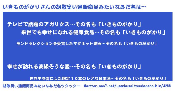| 欧米人風あだ名 | 『いきものがかり・ステッグマイヤー』 |