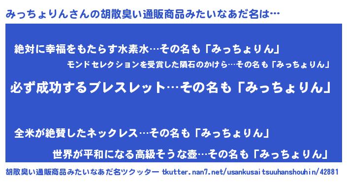| 欧米人風あだ名 | 『アンジェラ・みっちょりん』 |