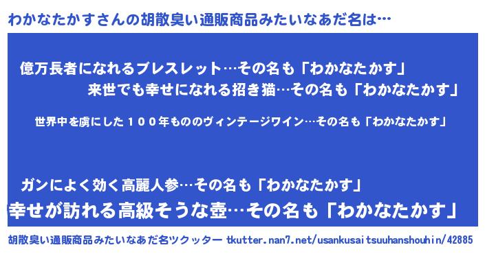 | 意味不明あだ名 | 『住所不定無職わかなたかす(10歳)』 |