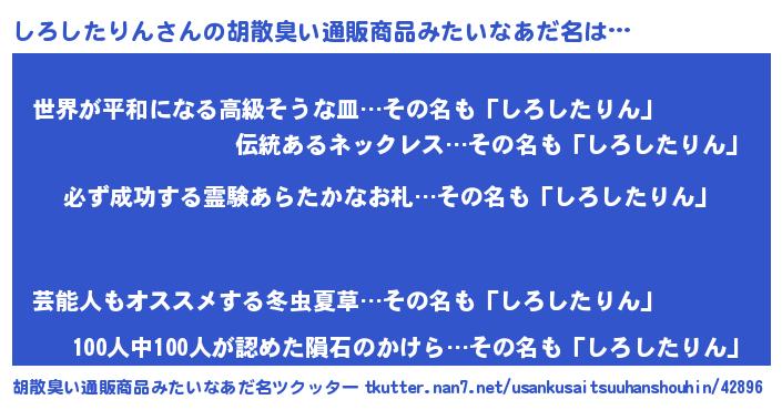 | 男性向けラノベタイトル風あだ名 | 『しろしたりんの憂鬱』 |