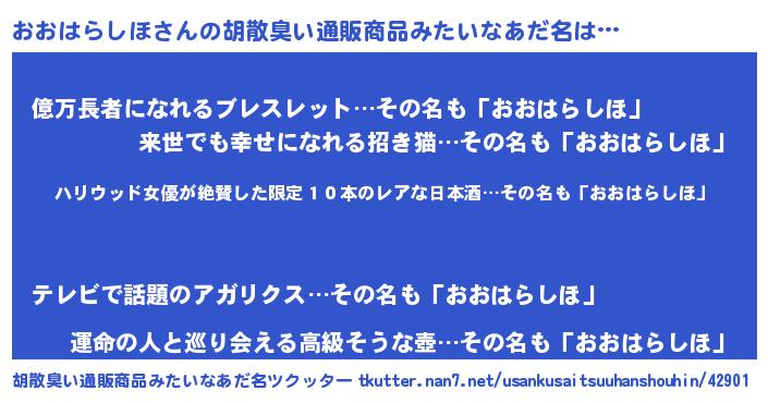 | 意味不明あだ名 | 『住所不定無職おおはらしほ(14歳)』 |