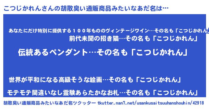 | 欧米人風あだ名 | 『アンジェラ・こつじかれん』 |