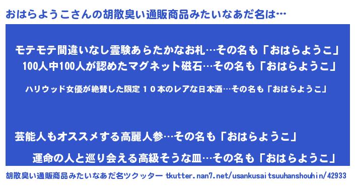 | 意味不明あだ名 | 『住所不定無職おはらようこ(56歳)』 |