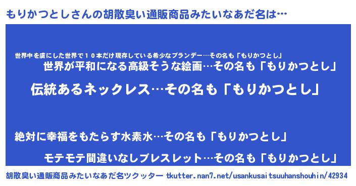 | 意味不明あだ名 | 『とにかく怪しいもりかつとし』 |