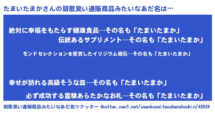 | ヘコむあだ名 | 『たまいたまか(爆)』『たまにゅー』 |