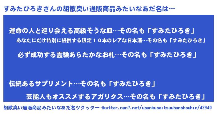 | 伝説のあだ名 | 『伝説のスナイパーすみたひろき』 |