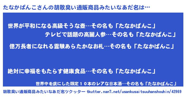 | ヘコむあだ名 | 『たなっふぃ~』『豆乳』『たなお』 |