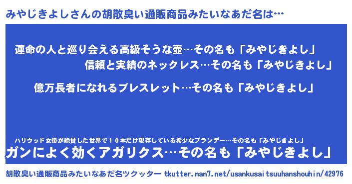 | ヘコむあだ名 | 『みやふぇ~』『豆乳』『みやっちょ』 |