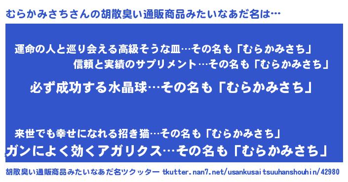 | 男性向けラノベタイトル風あだ名 | 『むらかみさちの憂鬱』 |