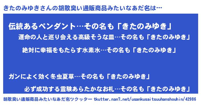 | 意味不明あだ名 | 『永久保存きたのみゆき』 |
