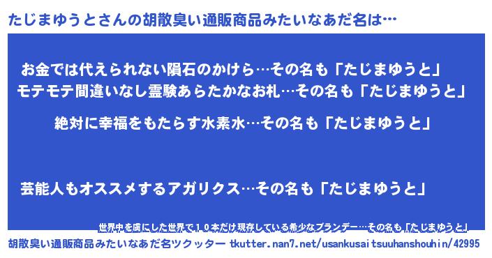 | ヘコむあだ名 | 『たじまゆうと(苦笑)』『たじっふぃ~』 |