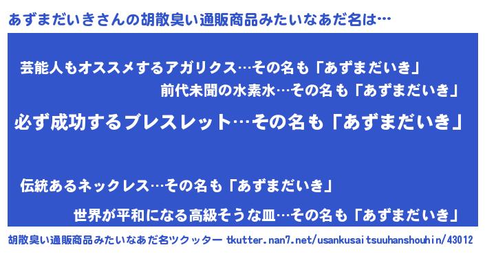 | ヘコむあだ名 | 『あずにー』『酢こんぶ』 |