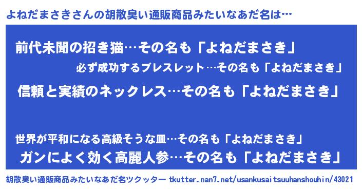 | ヘコむあだ名 | 『よね太郎』『よねだまさき(笑)』 |