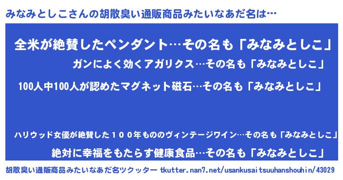 ヒーロー風カッコイイあだ名 | 『正義の使者みなみとしこ』 |